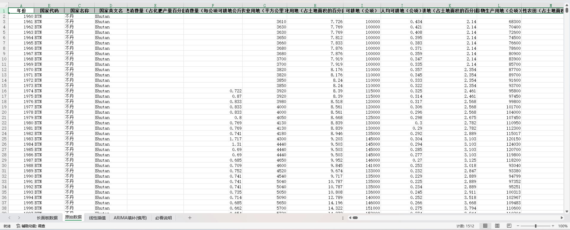 国家英文名 | 化肥消费量 | 农业用地 |