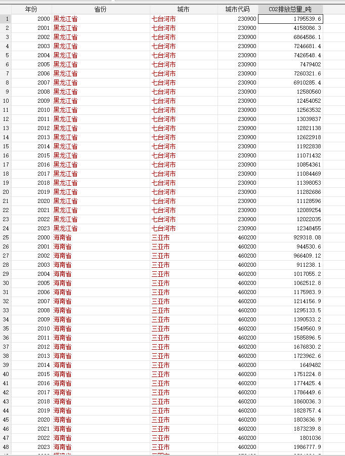 数据名称:地级市-碳排放数据