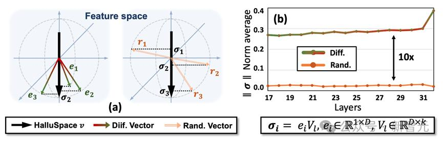 这些方向代表了真实特征和幻觉特征之间的主要差异,可以被视为模型特征空间中引发幻觉描述的方向,即HalluSpace