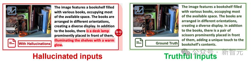 对于任意「视觉-文本」结构的输入数据,研究人员将构建数据对来实现幻觉子空间的抽取。每个数据对具有相同的图像和不同的文本信息:其中一个文本包含准确描述图像中物体的真实描述,作为负样本;另一个包含幻觉描述,作为正样本。