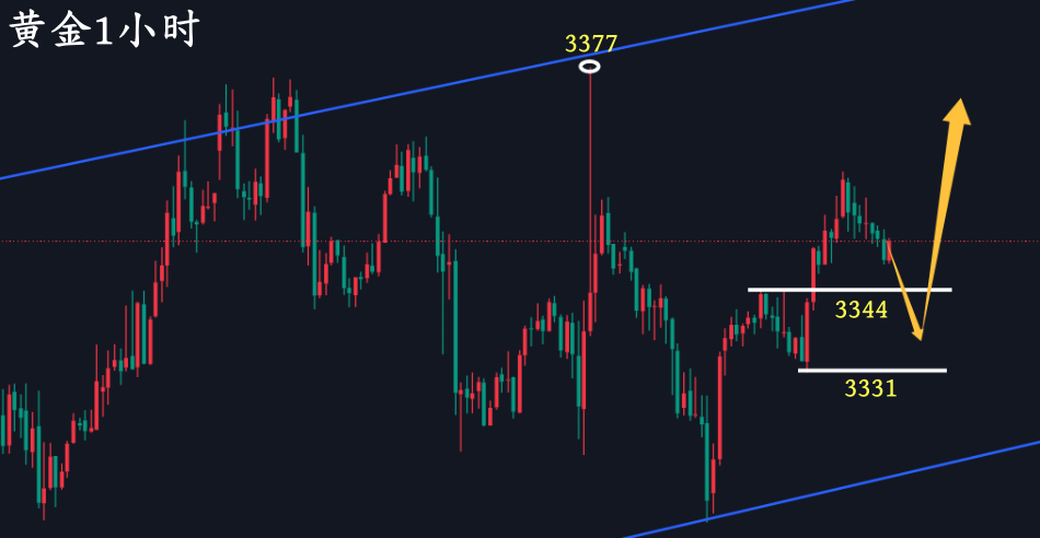 对于下周黄金,还是以高位宽幅震荡看待,强弱分水岭3400关口。周一或将延续上升还有一波冲高,重点关注3344—3331一线支撑,上方压力看3370—3377高点。