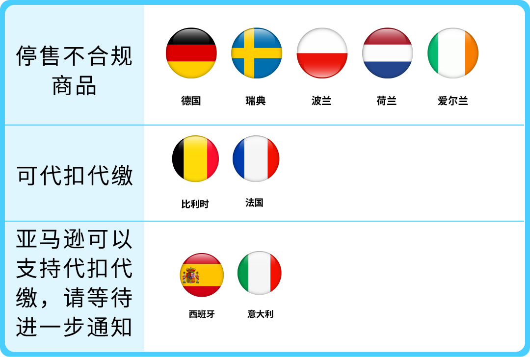 A:目前法国,比利时目前支持代付服务,其他国家亚马逊将在今年Q3进行更新,请留意平台通知。