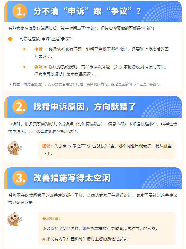 很多卖家在处理商品状况的申诉时,总觉得“我明明已经解释了,为什么还是失败?”其实,失败原因常常不是你不认真,而是忽略了一些小细节。我们整理了几个常见的“申诉误区”,教你怎么避开它们、提高成功率!