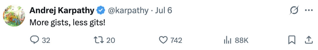[1]https://x.com/karpathy/status/1941616674094170287 [2]https://x.com/karpathy/status/1937902205765607626