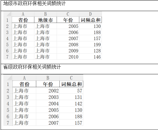 注:在地级市政府环保相关词词频分析中,指标为省份-地级市-年份-词频总和(含所有关键词词频);
