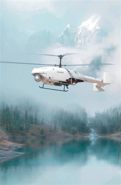 被称为“空中力士”的TD550共轴无人直升机,可搭载多种通用和专用任务载荷,已广泛应用于应急、消防、物流运输、林草、电力等多个行业。(芜湖联合飞机供图)
