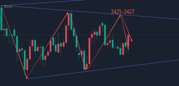 建议金价回踩下方3348-3350分批多,止损3338,目标3360-3362;虽然我说了高位不摸顶,但是如果金价反弹到了上方3425-3427区间可以博取短空,止损3437,目标3413-3415;毕竟这个位置是日线级别下跌趋势压力的位置,首次触及可以尝试短空;(策略建议仅供参考,盈亏自负,做单严格做好风控,设置止损和目标位置,杜绝扛单)