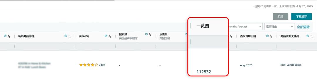 自身的ASIN详情页面的查看次数(浏览量),也可以通过一览图获知。