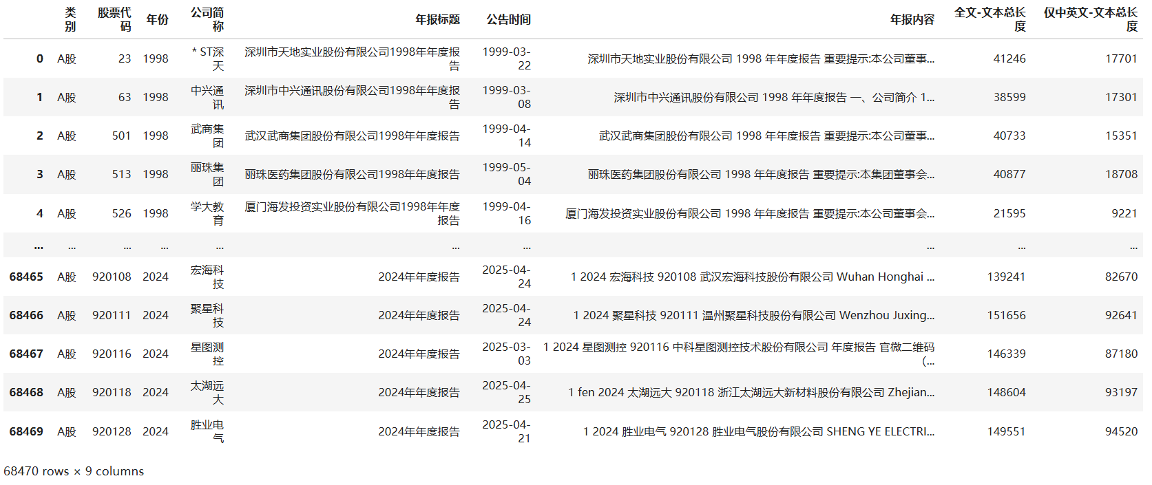 年报内容 | 全文-文本总长度 | 仅中英文-文本总长度 |