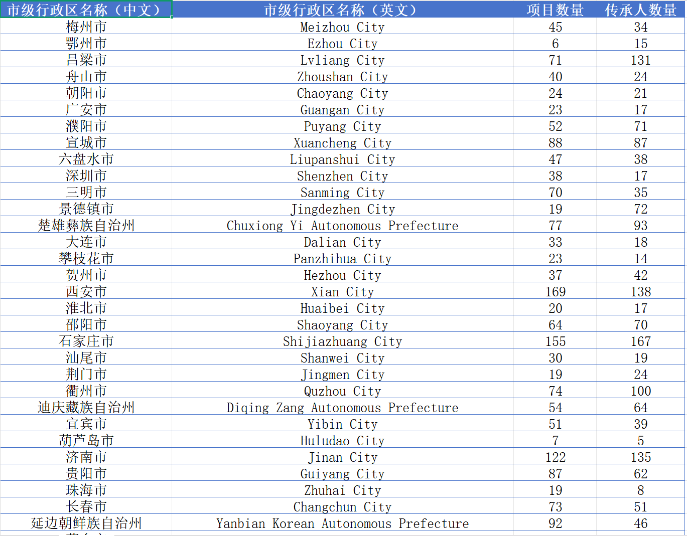3、2024年各市省级非物质文化遗产代表性项目与代表性传承人数量