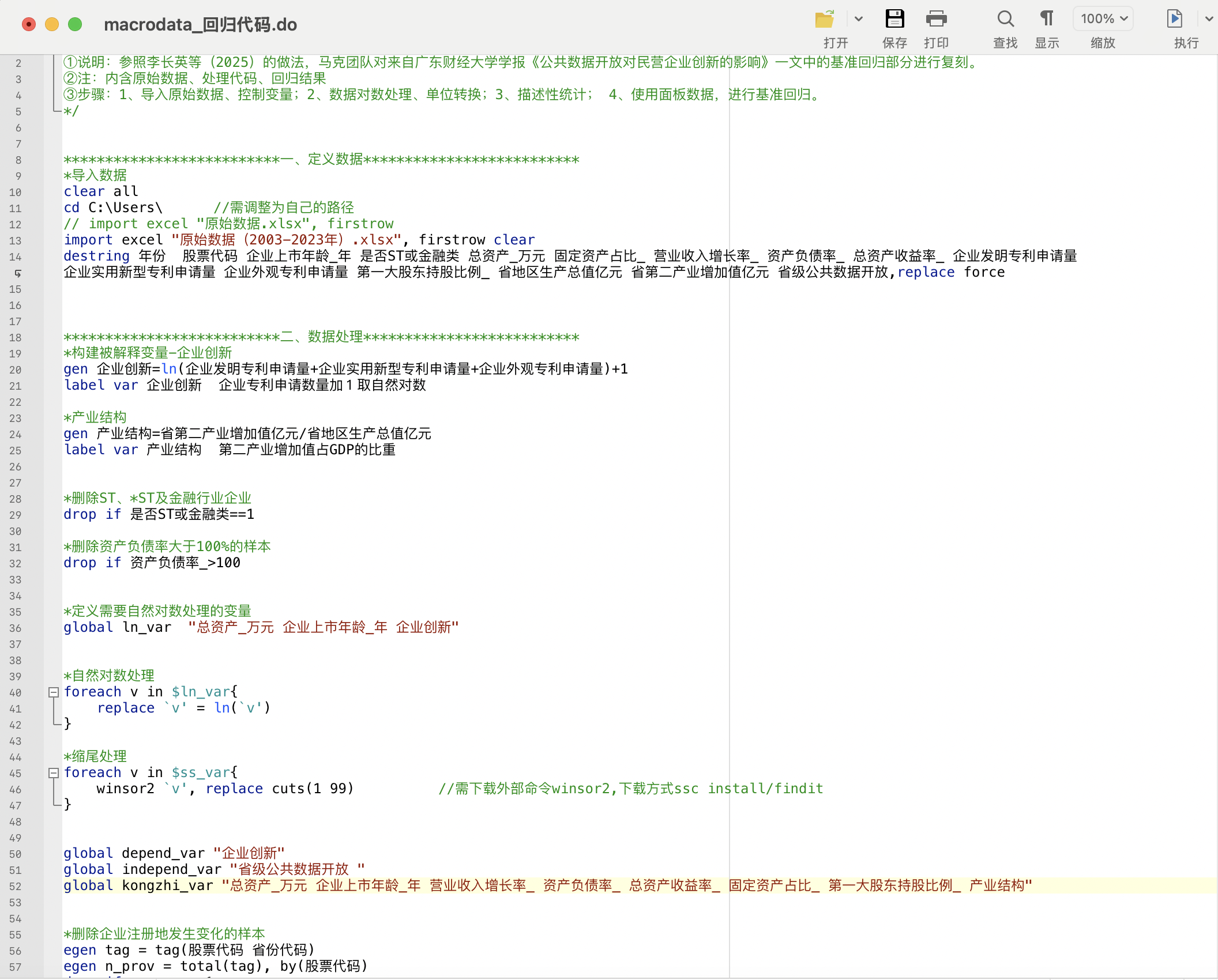参照李长英等(2025)的做法,对《公共数据开放对民营企业创新的影响》一文中的基准回归部分进行复刻