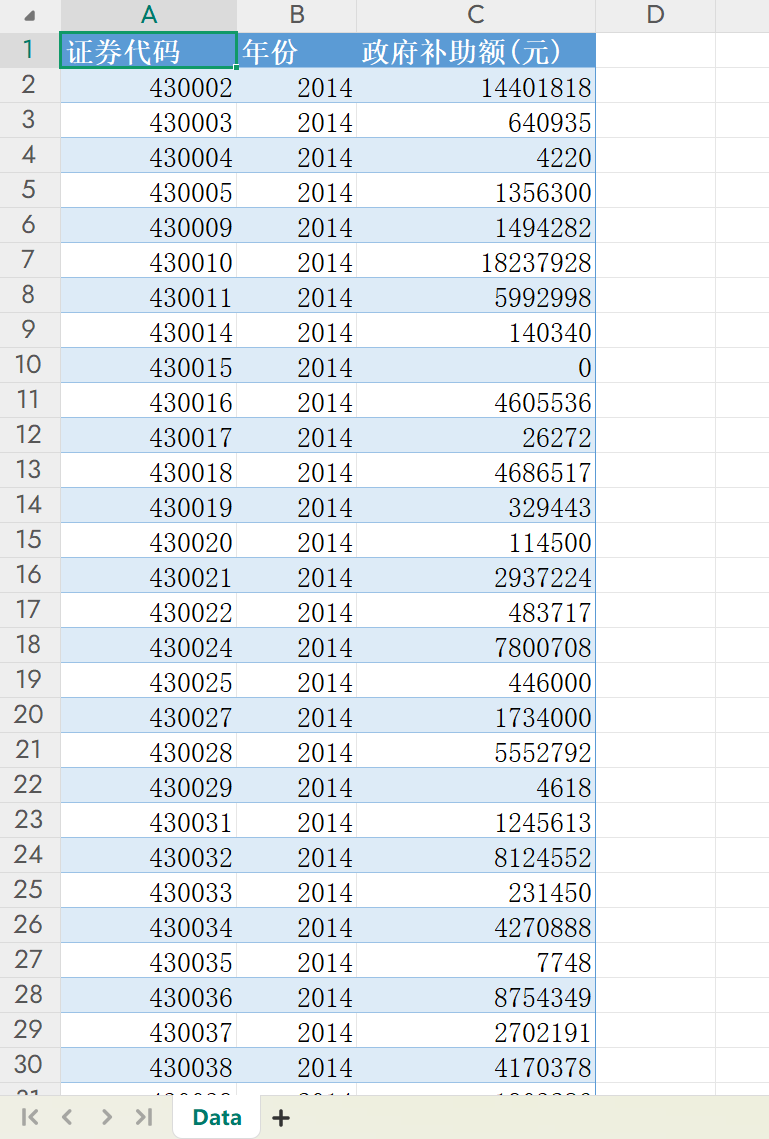 数据说明:包括新三板基本信息、研究数据、政府补助数据