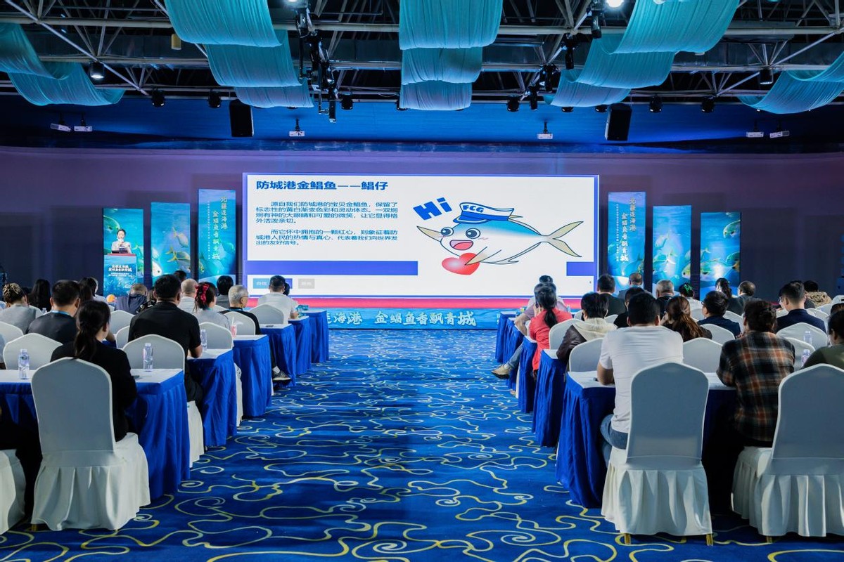 活动现场,防城港金鲳鱼产业IP形象"鲳仔"首次亮相。该形象融合了金鲳鱼特征与海洋文化元素,将应用于产品包装和品牌宣传。在企业推介环节中,六家企业代表依次登台,分别就金鲳鱼养殖、金花茶深加工、海洋生物科技、香料产品开发等板块进行分享,全面展现防城港农业产业多元化、科技化、品牌化发展的新面貌,吸引了众多客商的关注。