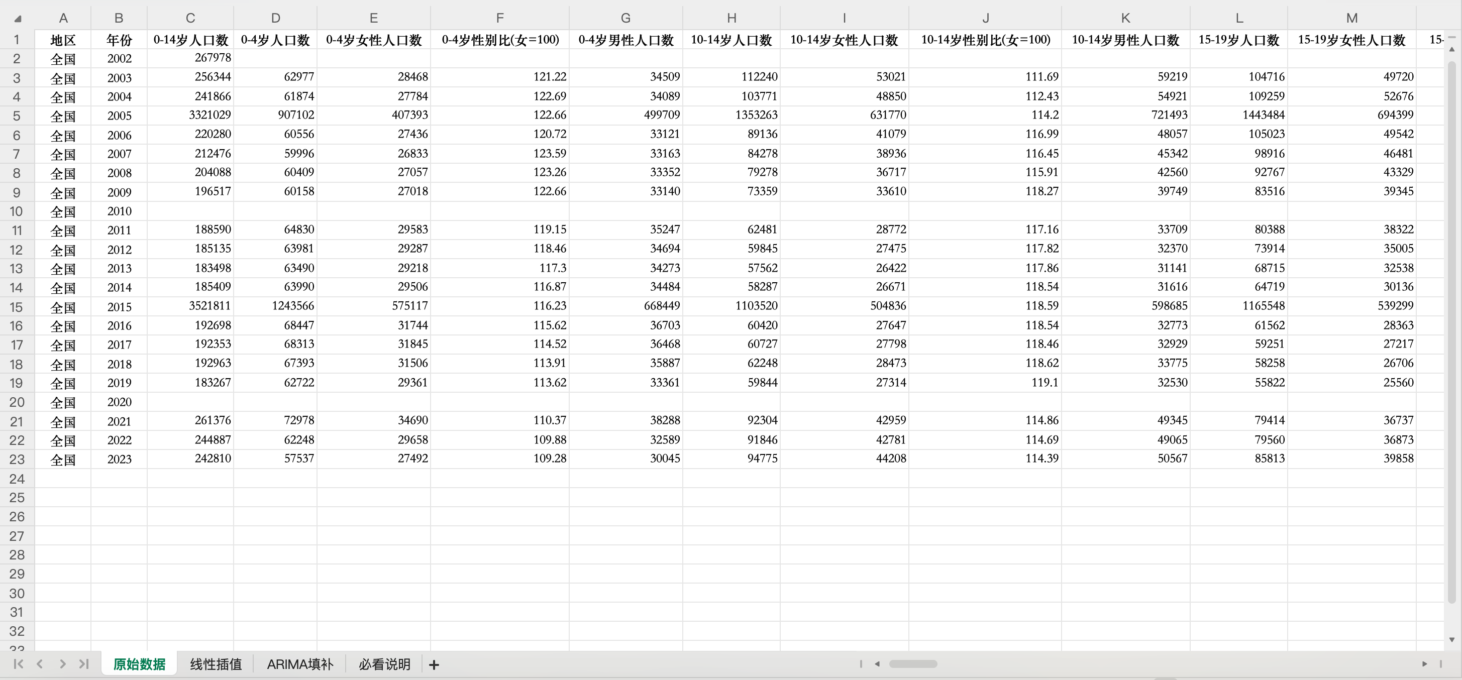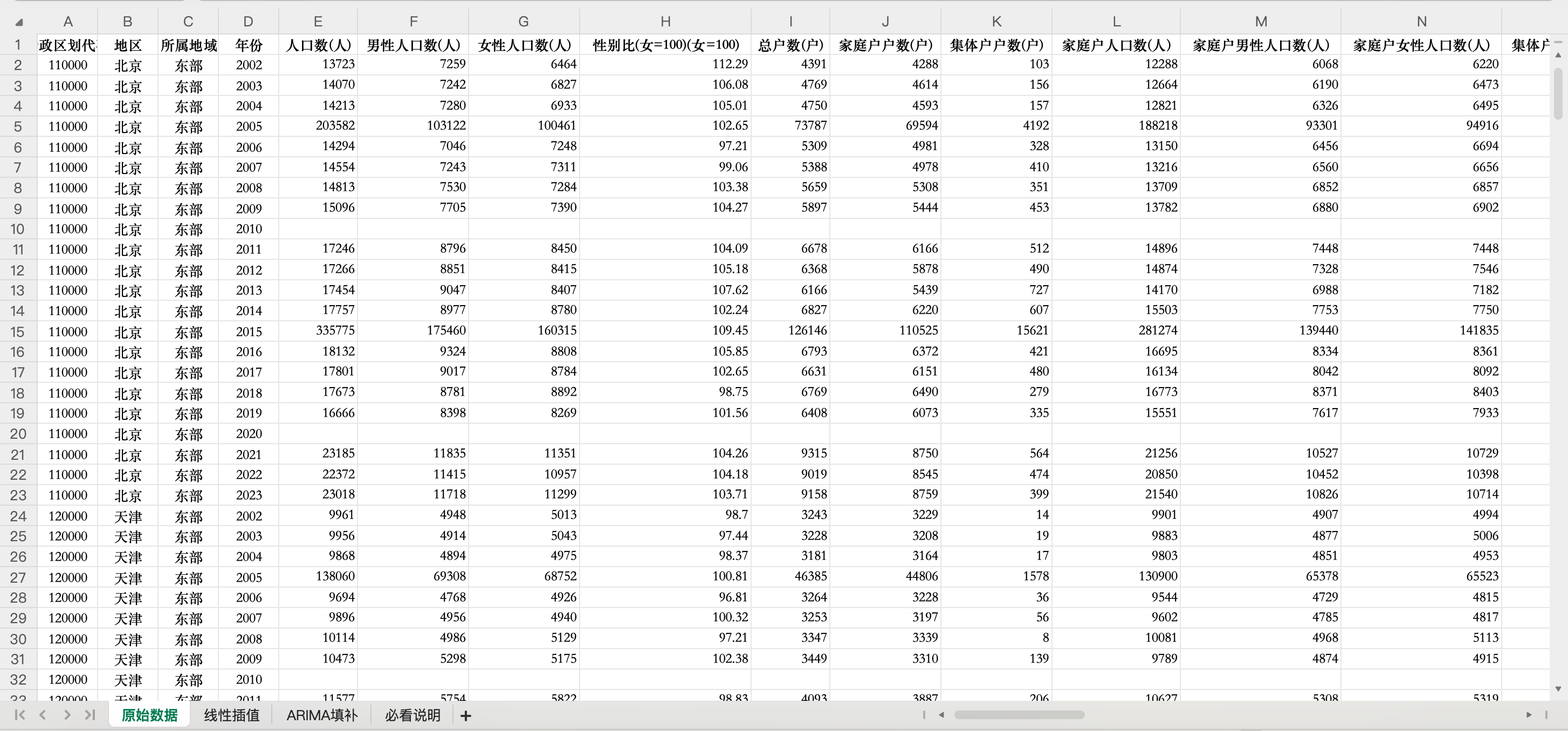 更多说明:包括原始、线性插值、回归填补3个版本