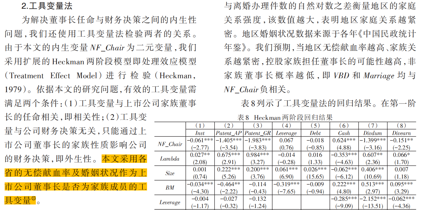 ➤《管理世界》姜付秀等(2017):作为上市公司董事长是否为家族成员的工具变量