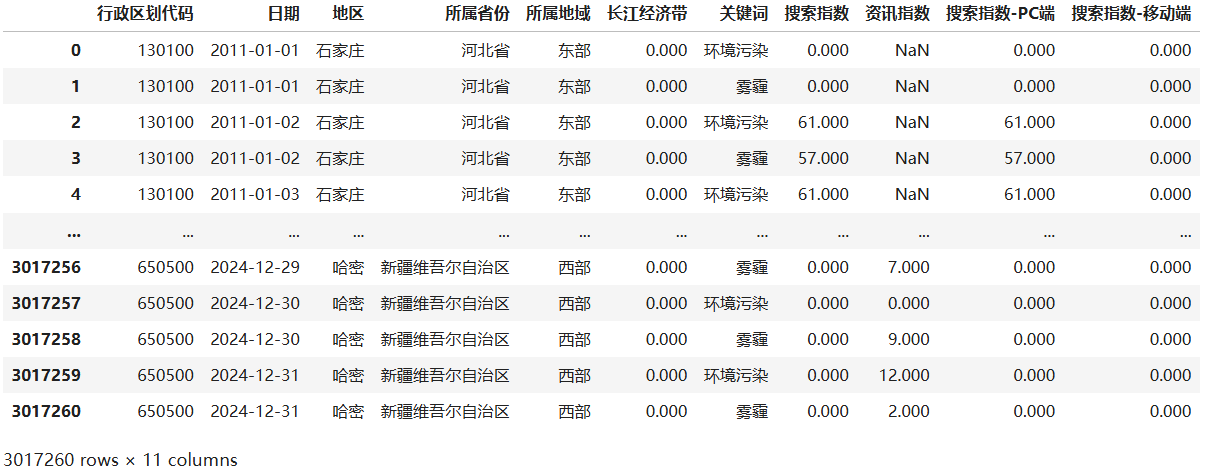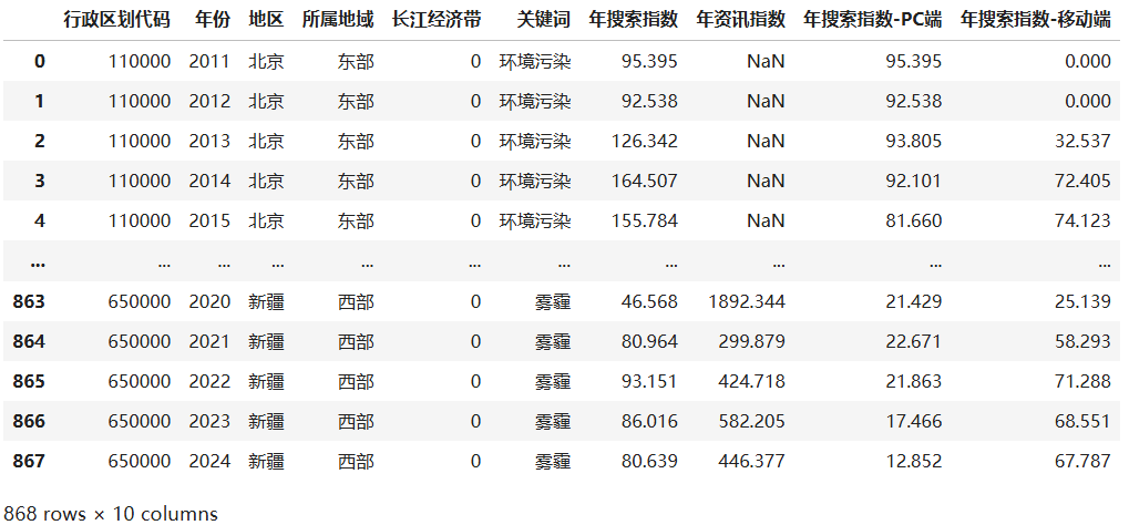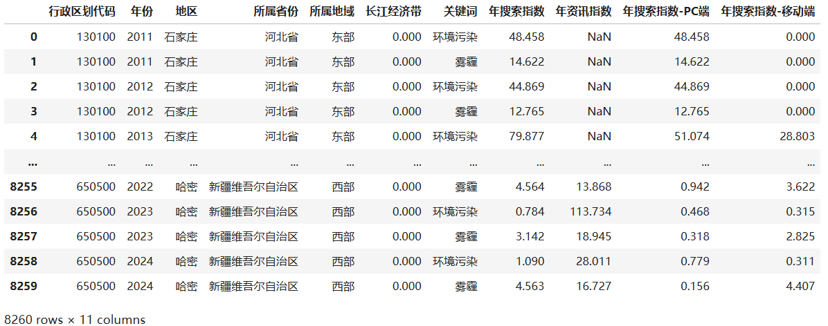 参考《中国人口·资源与环境》中吴力波(2022)的做法,团队整理了各地级市、省级的"雾霾"和"环境污染"的百度搜索指数、资讯指数,以衡量各地级市、各省的公众环境关注水平