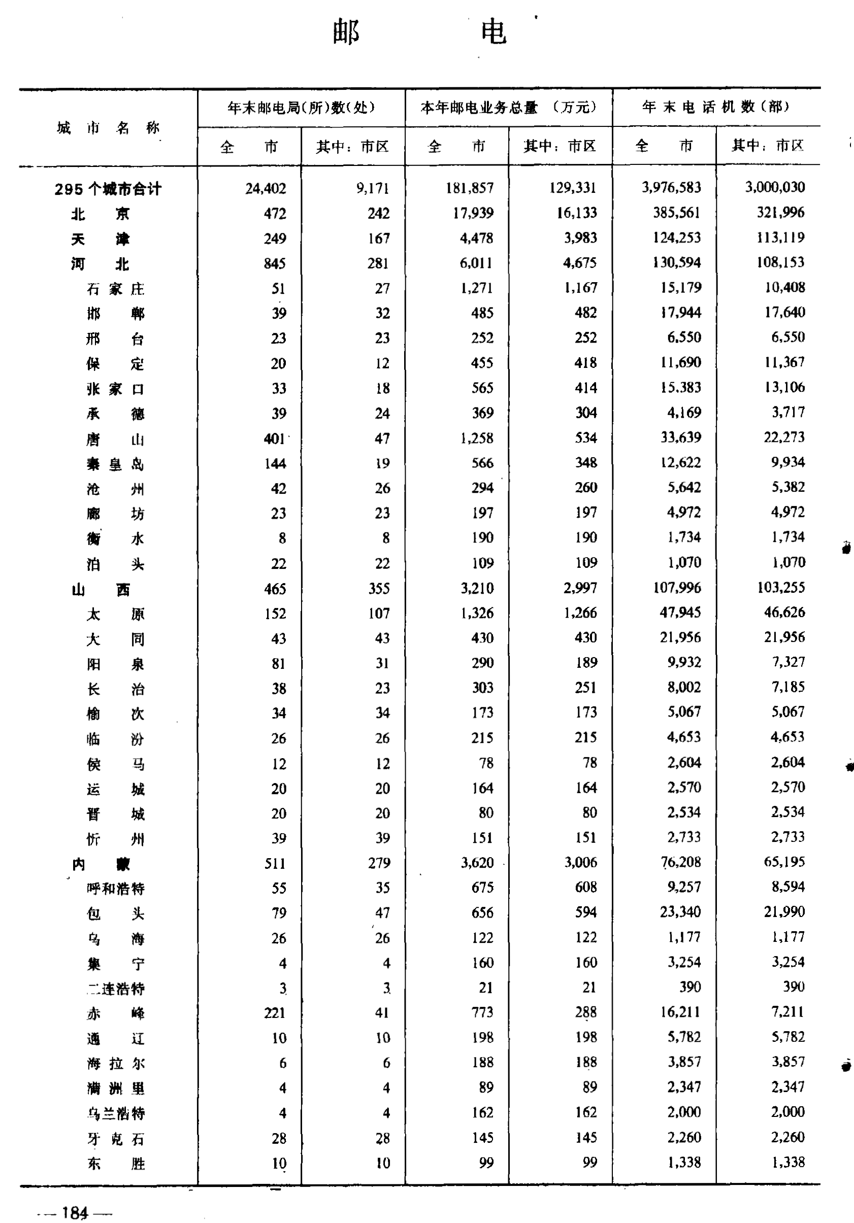 更多说明:包含原始年鉴PDF、邮电数量整理