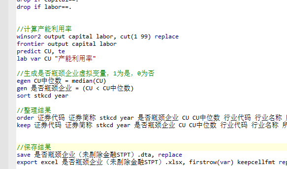 【企业产能利用率CU】使用随机前沿生产函数法来测算企业产能利用率(CU),使用营业收入、资产总额和企业人数来构建随机前沿生产面,进而计算企业产能利用率。
