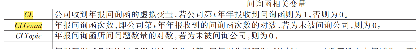【CL】公司当年是否收到年报问询函的虚拟变量,是为 1,否为0