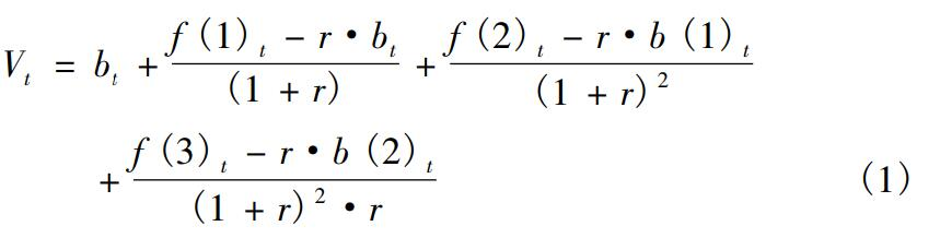 本文采用式(2)估计获得的系数预测每一年公司未来一至三年的每股盈余,并将其代入式(1)中估计公司的内在价值。在利用(1)式进行公司内在价值估计时,我们还对公司未来两期的每股权益价值进行了预测,采用的公式分别为