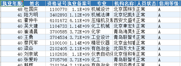 执业年限 | 姓名 | 资格证号 | 执业备案号 | 专业 | 机构名称 | 人员状态 |