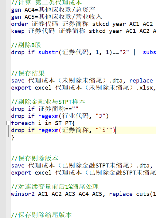 - 与大多数文献相同,做了如下的处理:剔除金融行业的样本;剔除当年年末被ST、*ST或PT的上市公司;剔除公司上市之前的样本;剔除已经退市的上市公司样本