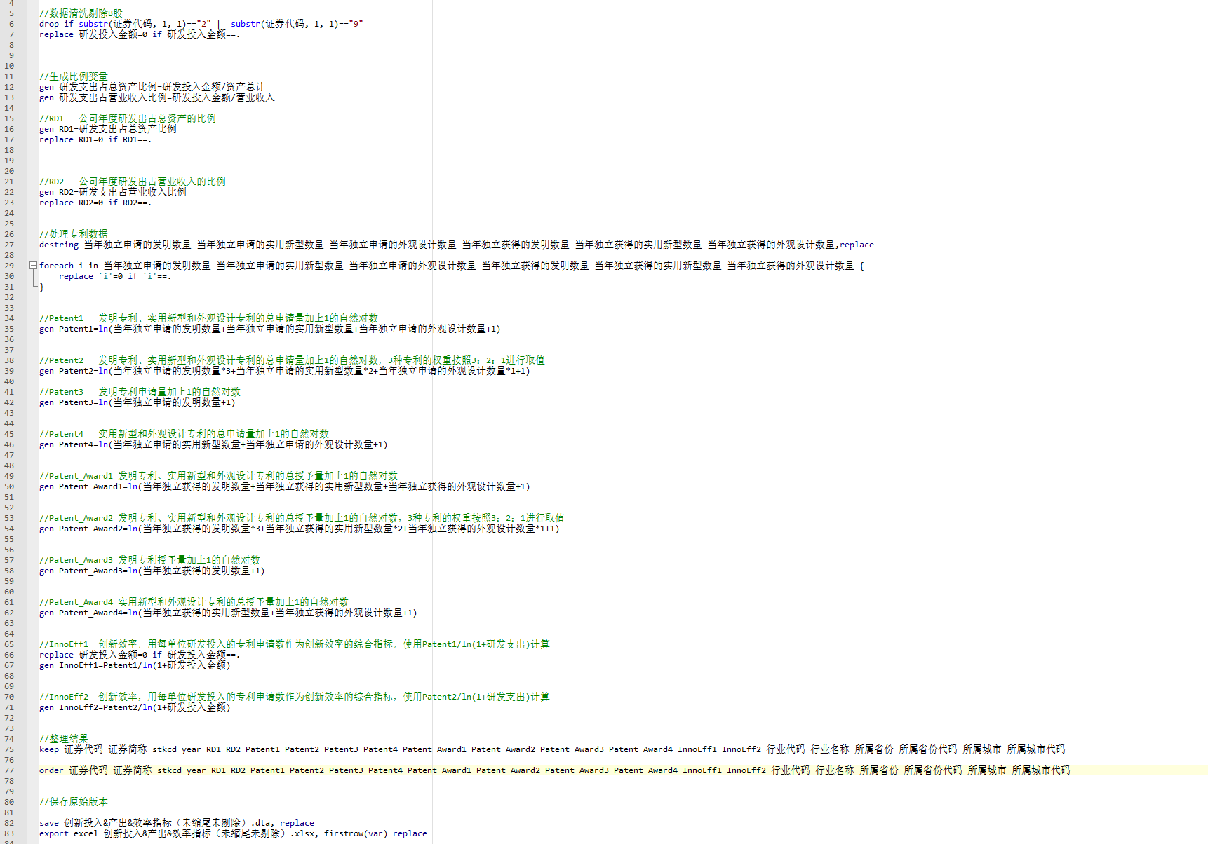 上市公司创新投入&产出&效率指标Stata计算代码2000-2024年.zip