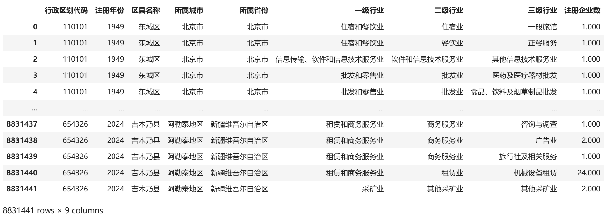 【数据】800万+中国区县行业-新注册企业数据(1949-2024年)
