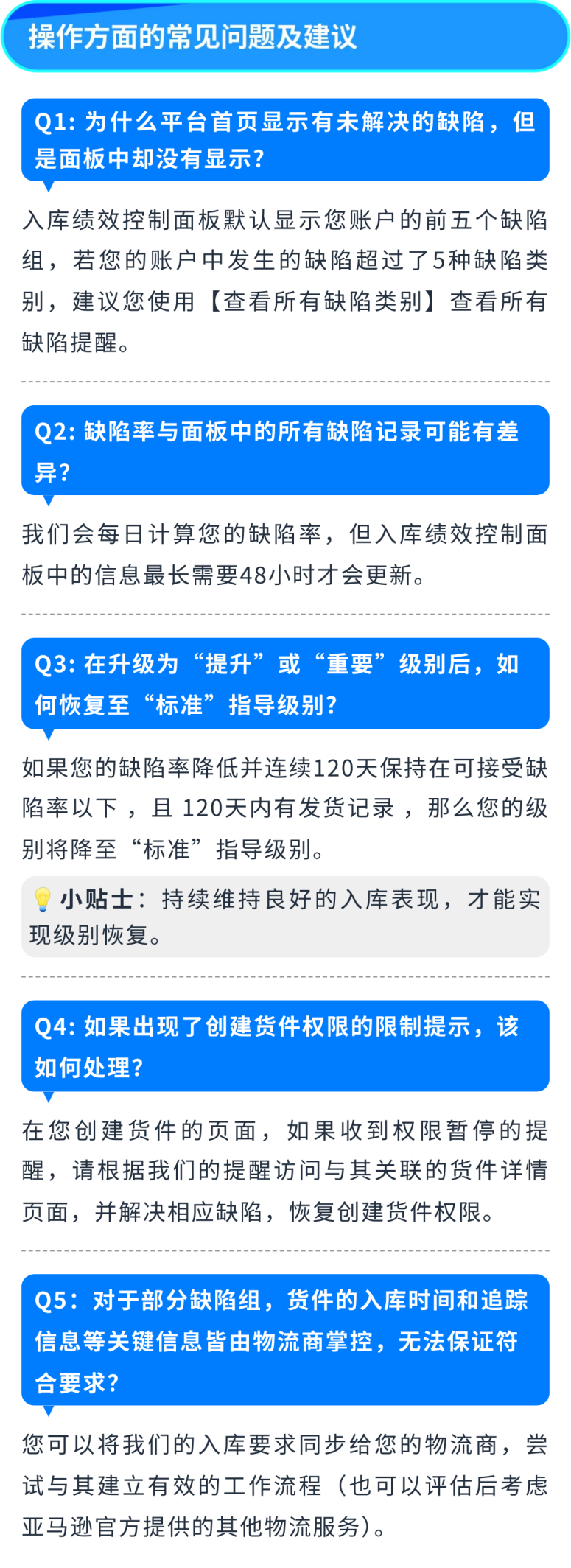 通过预防货件缺陷,此面板可以帮助您的库存更快地上架销售,减少库存丢失或库存残损、买家投诉和退货等问题。
