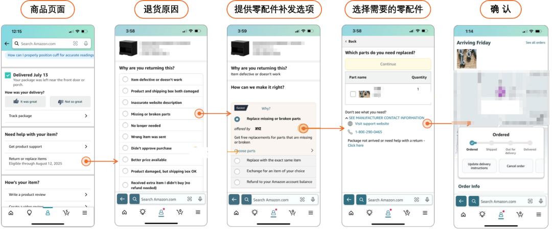 大家不要着急,为了帮助大家破解这些退货困局,亚马逊在商品支持,新增零配件补发功能:允许亚马逊顾客在退货窗口内,直接向卖家免费申请缺失或损坏的配件,无需退回整件商品。