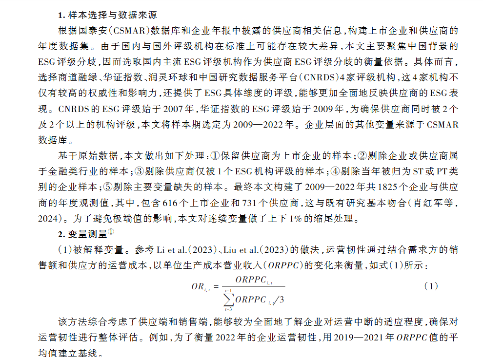 参考文献:赵云辉,孙源,冯泰文,等.供应商ESG评级分歧何以影响企业运营韧性[J].中国工业经济,2024,(11):174-192.
