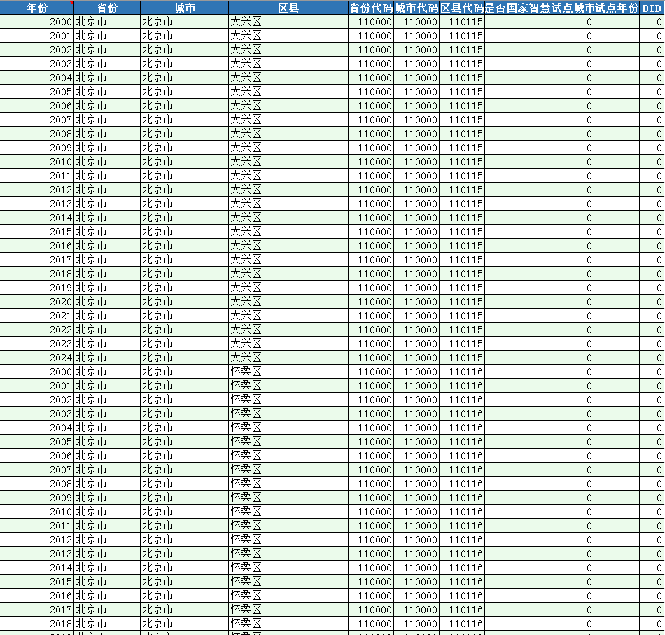 - 数据名称:国家智慧城市试点DID数据集(2000-2024)
