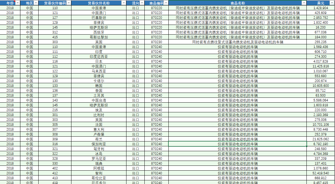 [经管数据集] 中国与世界各国新能源汽车进出口数据(2017-2024年) |