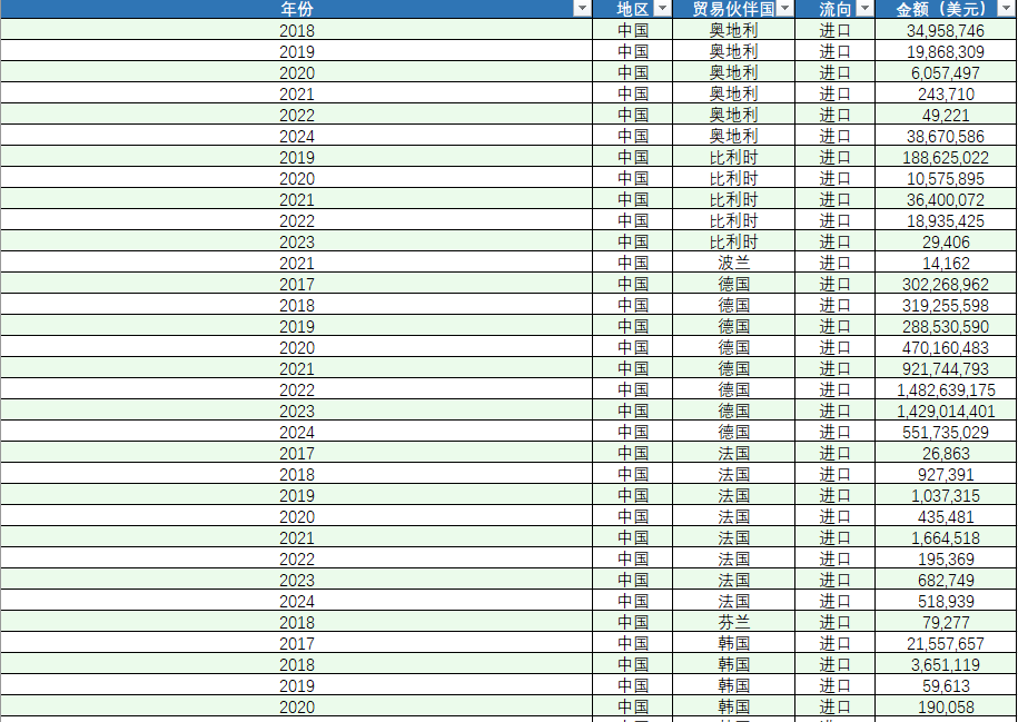 - 数据来源:中国官方贸易统计数据