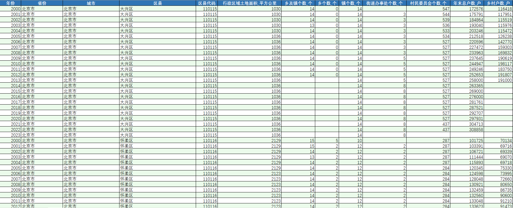 | 年份 | 省份 | 城市 | 区县 | 区县代码 |