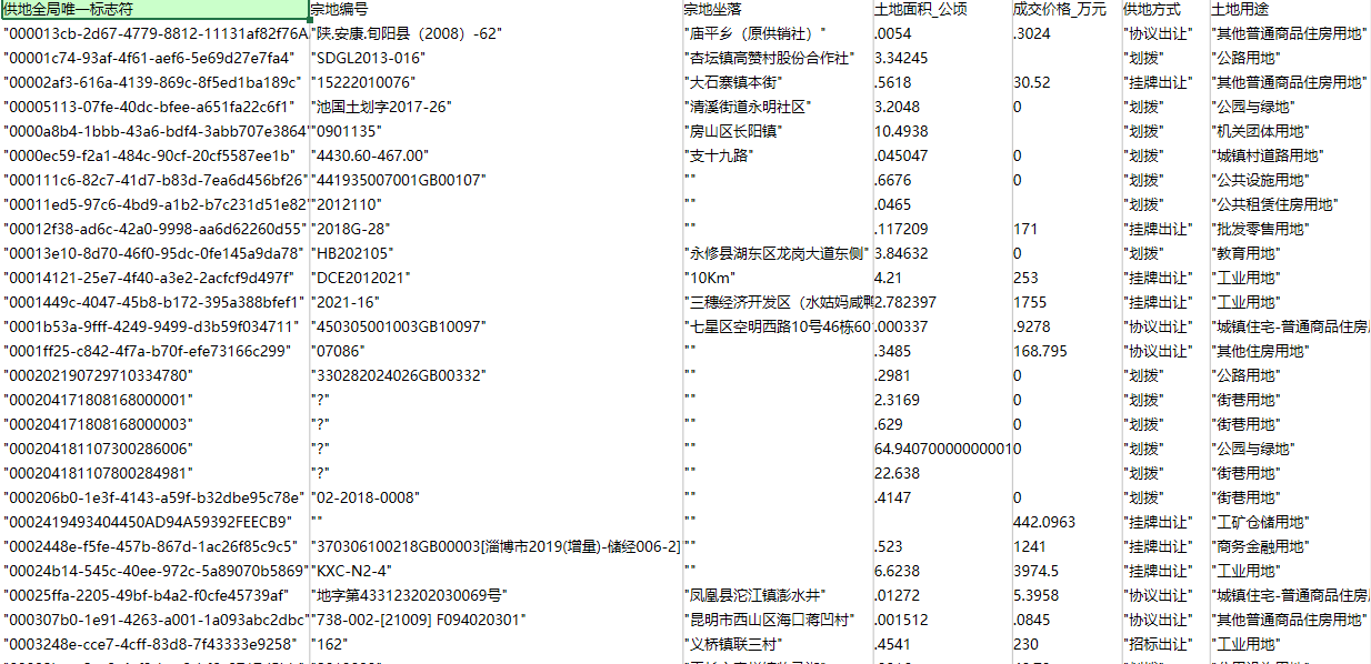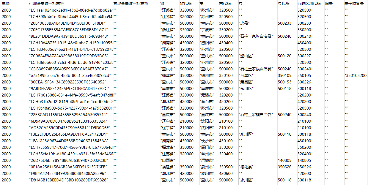 - 数据名称:全国省、市、区县土地出让结果公告数据(2000-2024年)