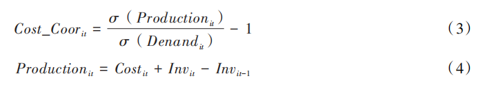 Production通过式(4)计算得到,Cost为企业营业成本,Inv为企业年末存货净值;企业需求量 Denand以企业营业成本 Cost作为代理变量。供应链上供需偏离程度越大,说明供应链上供求匹配精准度越低,企业的供应链供求协调成本越高