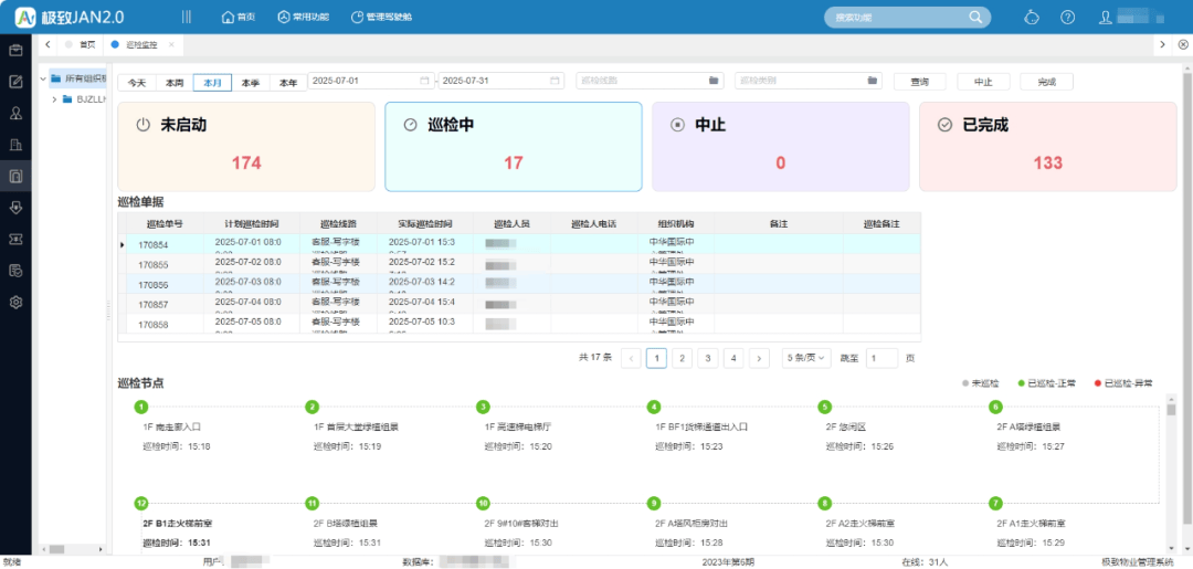 中华广场商场建筑面积17万㎡,写字楼建筑面积12万㎡,日常巡检路线长、任务繁重。一套能够直观呈现点位巡检频次、周期及结果等关键品质信息的巡检管理平台,更能有效推动巡检计划落地执行,保障巡检质量,并为管理层监督巡检成效提供便利。