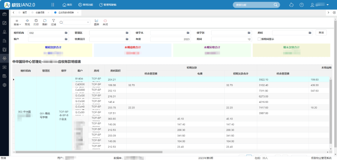 中华广场作为大型商写综合体,收费种类繁多、统计量大,费用的应收、实收及预收报表的智能化整理和分析是提升其管理效率的重点。