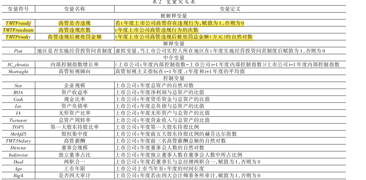 【高管是否违规】若公司有高管在某一年度违规,则高管是否违规取值为1:否则为0
