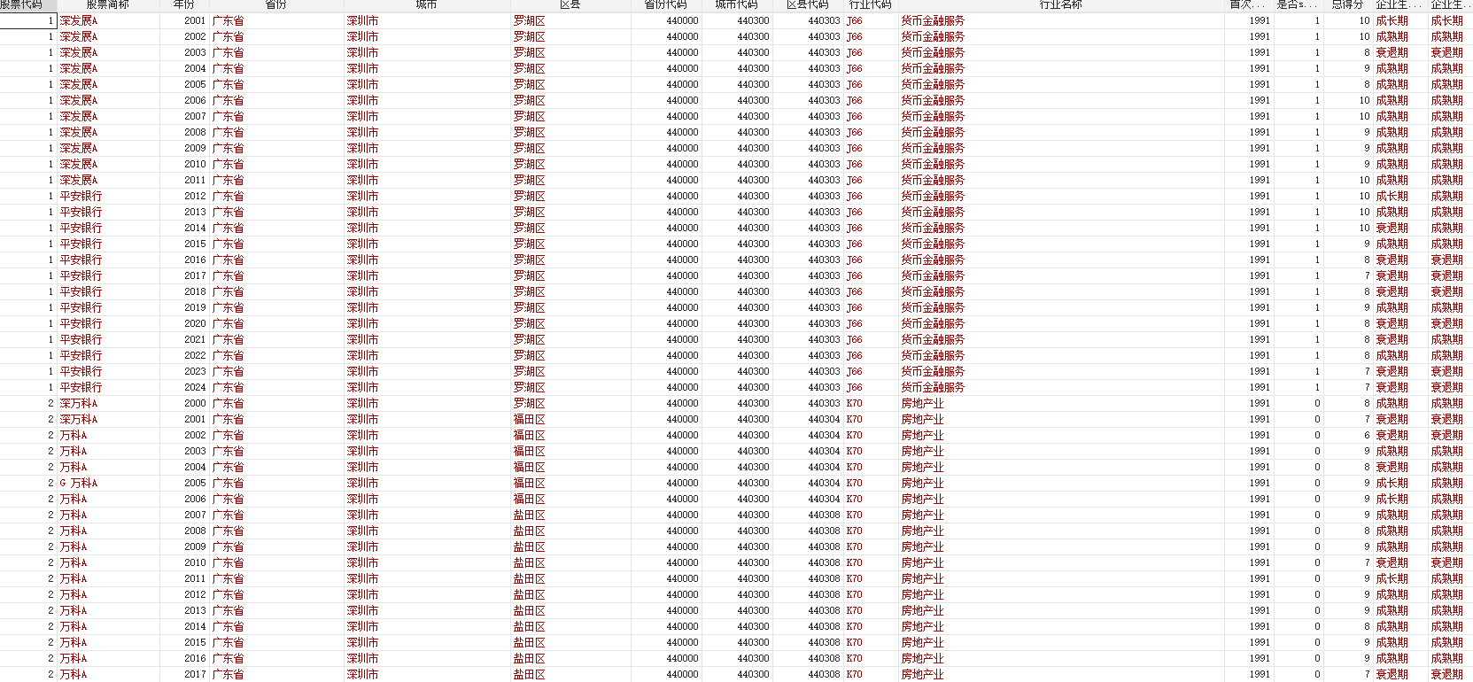 | 股票代码 | 股票简称 | 年份省份 | 城市 | 区县省份代码 |