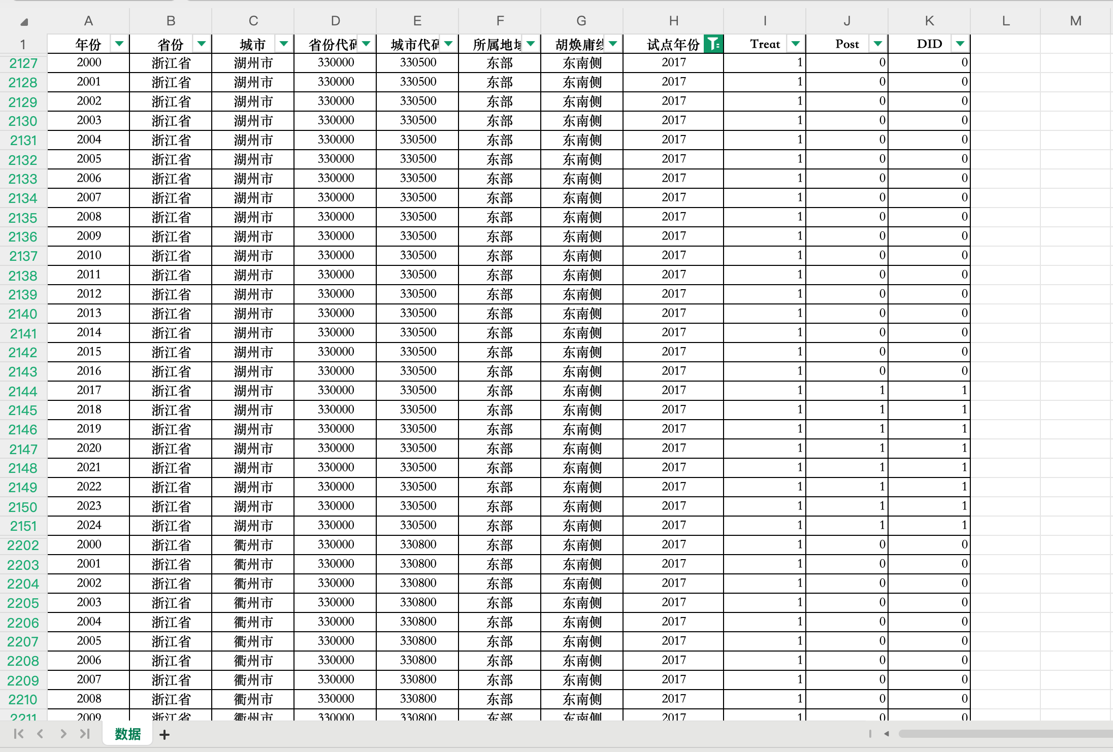参考《中国工业经济》崔惠玉等(2023)文中绿色金融改革创新试验区的做法,将绿色金融改革创新试验区名单进行匹配,分别形成按城市、企业2份DID数据