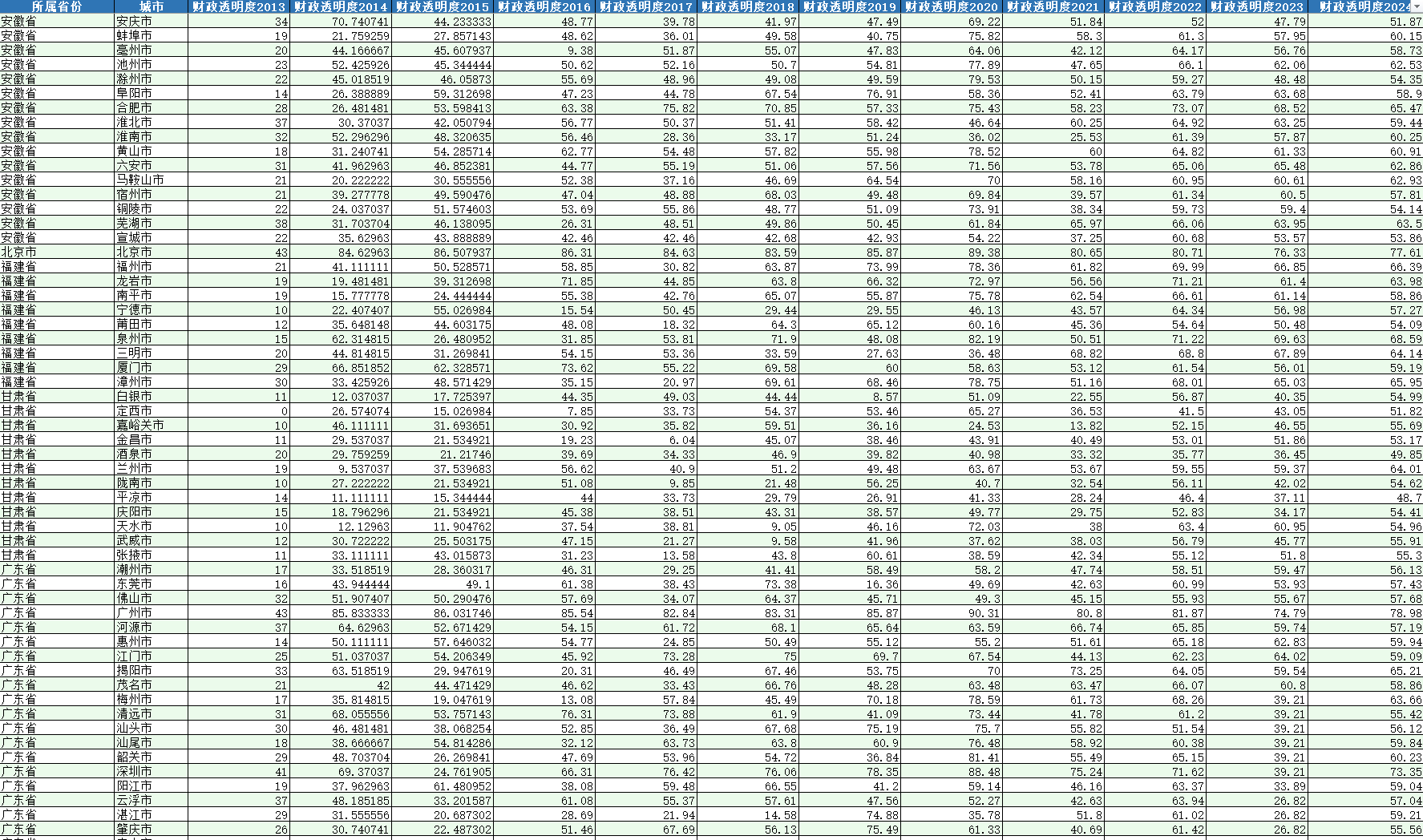 - 数据名称:中国地级市财政透明度数据集(2013-2024)