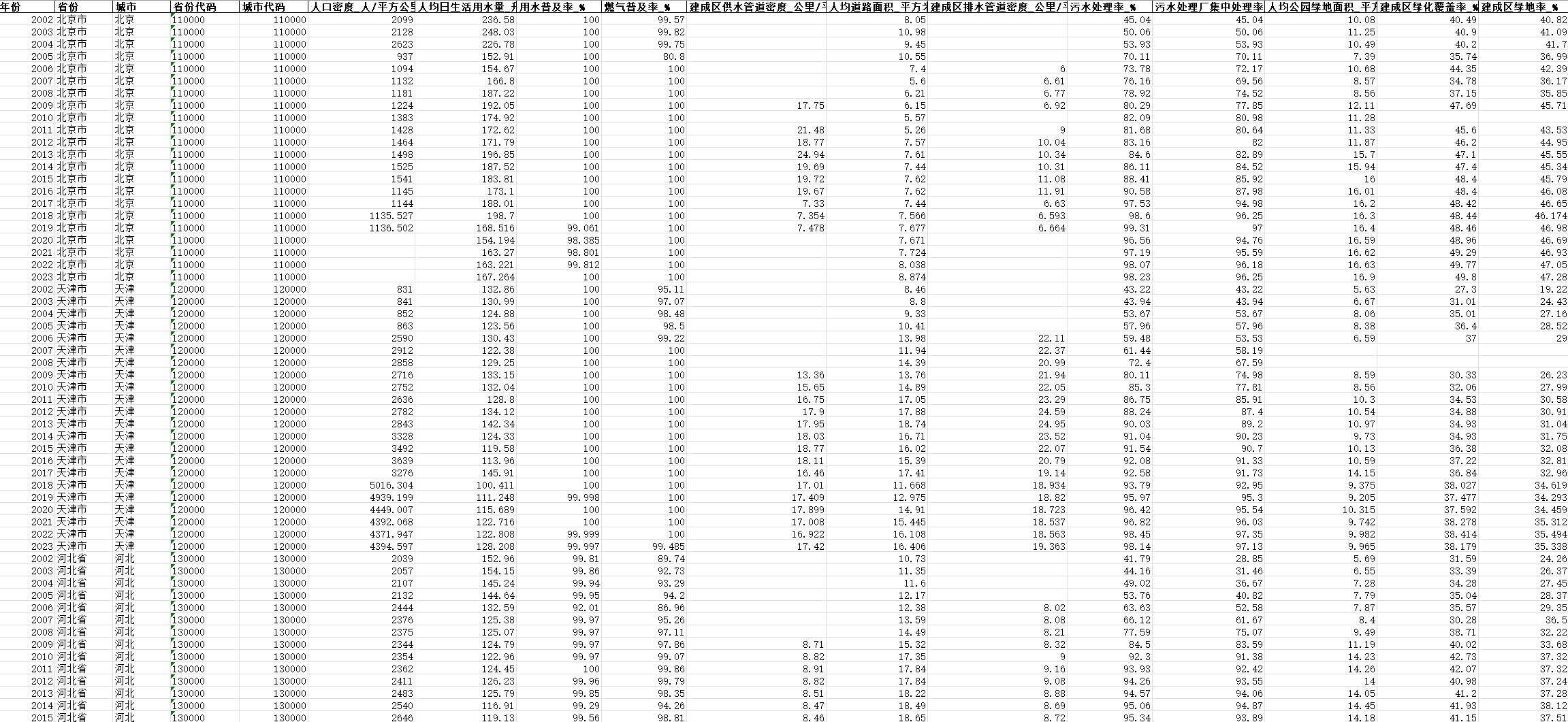 - 数据名称:中国城市建设统计数据库(2002-2023年)
