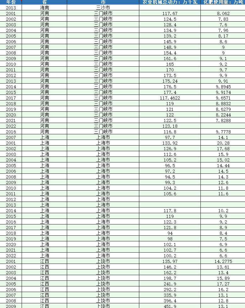 - 数据名称:中国县域农业机械化与化肥使用数据(2000-2023)
