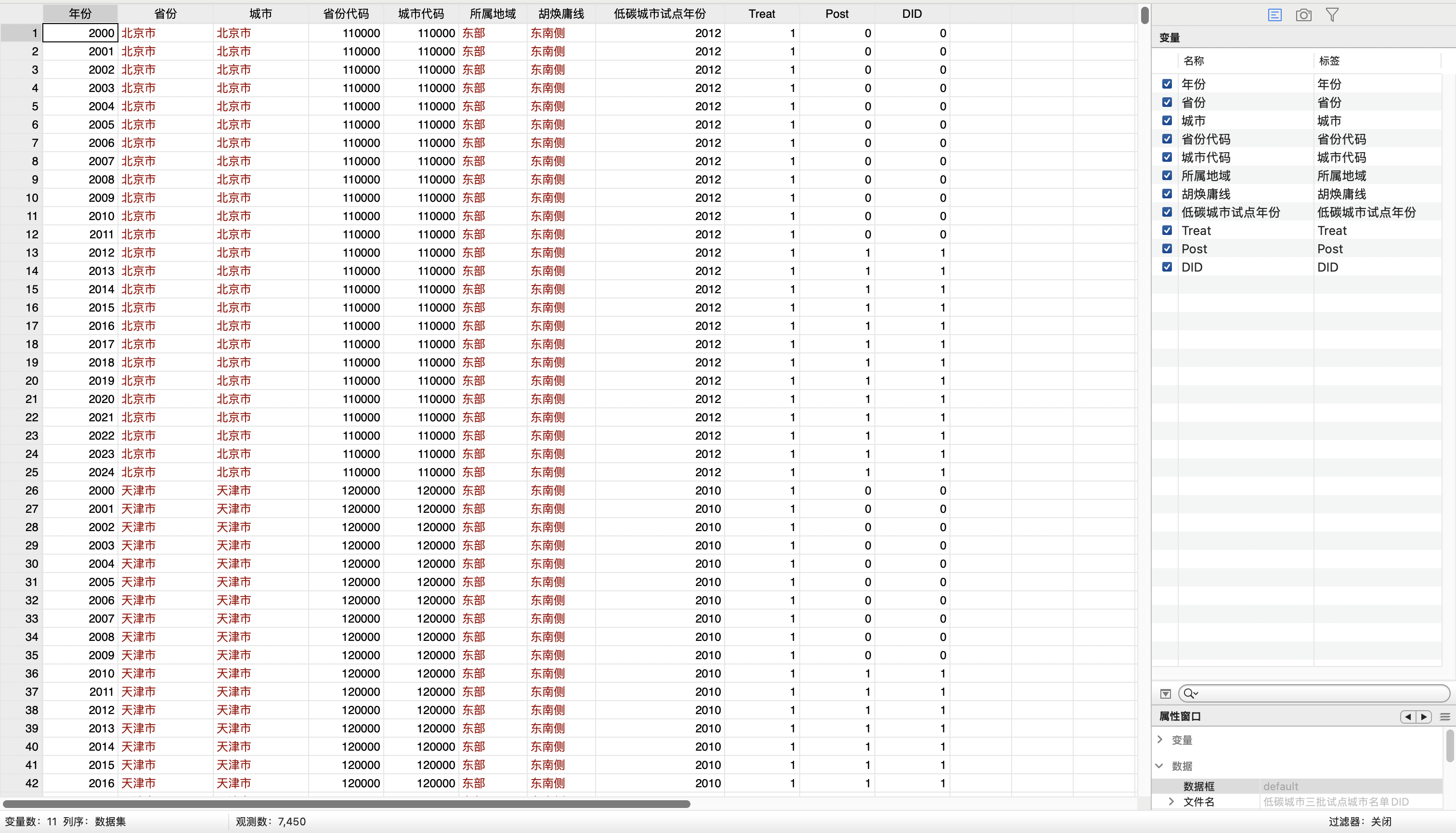 数据名称:“低碳城市”三批试点城市名单DID