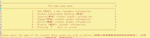 cout<<"Please enter the name of the student whose grade you wish to delete(请输入你要删除成绩的学生的姓名):";