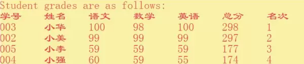 cout<<"姓名\t学号\t英语成绩 : "<<endl;