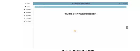 用户登录系统后可以对首页、个人中心、公告信息管理、疫情信息管理、预约记录管理、个人打卡管理、疫情人员管理等功能进行操作。如图5-11所示: