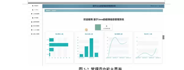 管理员进入系统主界面,主要功能包括首页、个人中心、公告信息管理、用户管理、疫情信息管理、预约记录管理、个人打卡管理、疫情人员管理等操作。管理员主页面如图5-2所示: